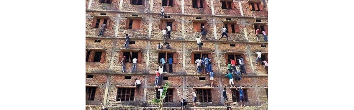 Sim, acredite: essas pessoas escalando as paredes são pais querendo passar cola para os filhos na escola Vidya Niketan, na Índia. A cena se repetiu em várias escolas de cidades diferentes, onde os estudantes faziam a mesma prova: um exame padronizado do país para estudantes do 10º ano.