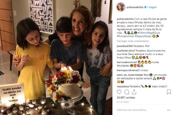 Poliana Abritta comemora seus 43 anos ao lado dos filhos (Foto: reprodução / Instagram @polianaabritta)