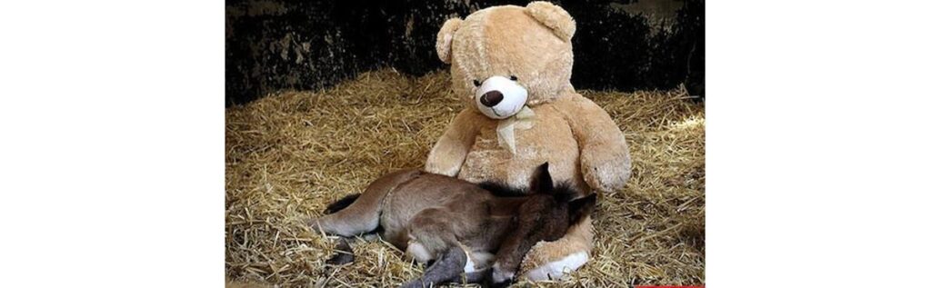 Depois da recuperação, o animal começou a dar sinais de carência que, claramente, era pela falta da mãe. Para resolver o problema, o diretor executivo do local, Syra Bowden, deu um ursinho de pelúcia de presente para o potro que, depois de receber o carinho, não largou mais o urso.
