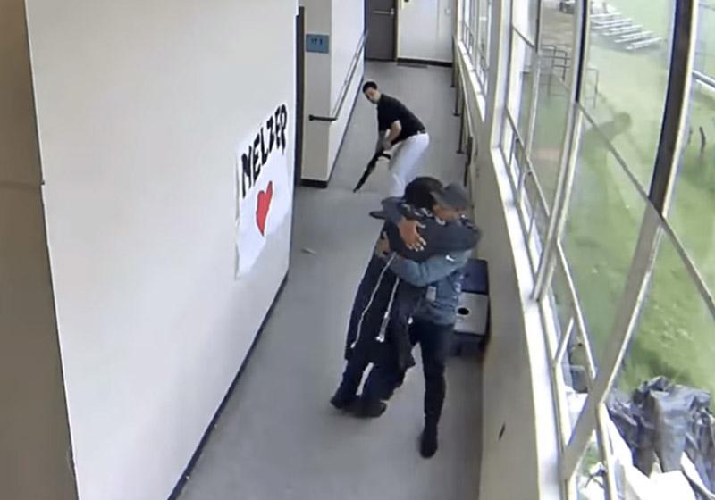O aluno, Angel Granados-Diaz, de uma escola em Oregon, nos Estados Unidos, levou uma arma para escola, mas foi impedido pelo treinador de futebol americano a terminar seu ato. O professor, Keanon Lowe, de 27 anos, conversou com o estudante e depois de entregar a arma à outro professor, deu um abraço no jovem.