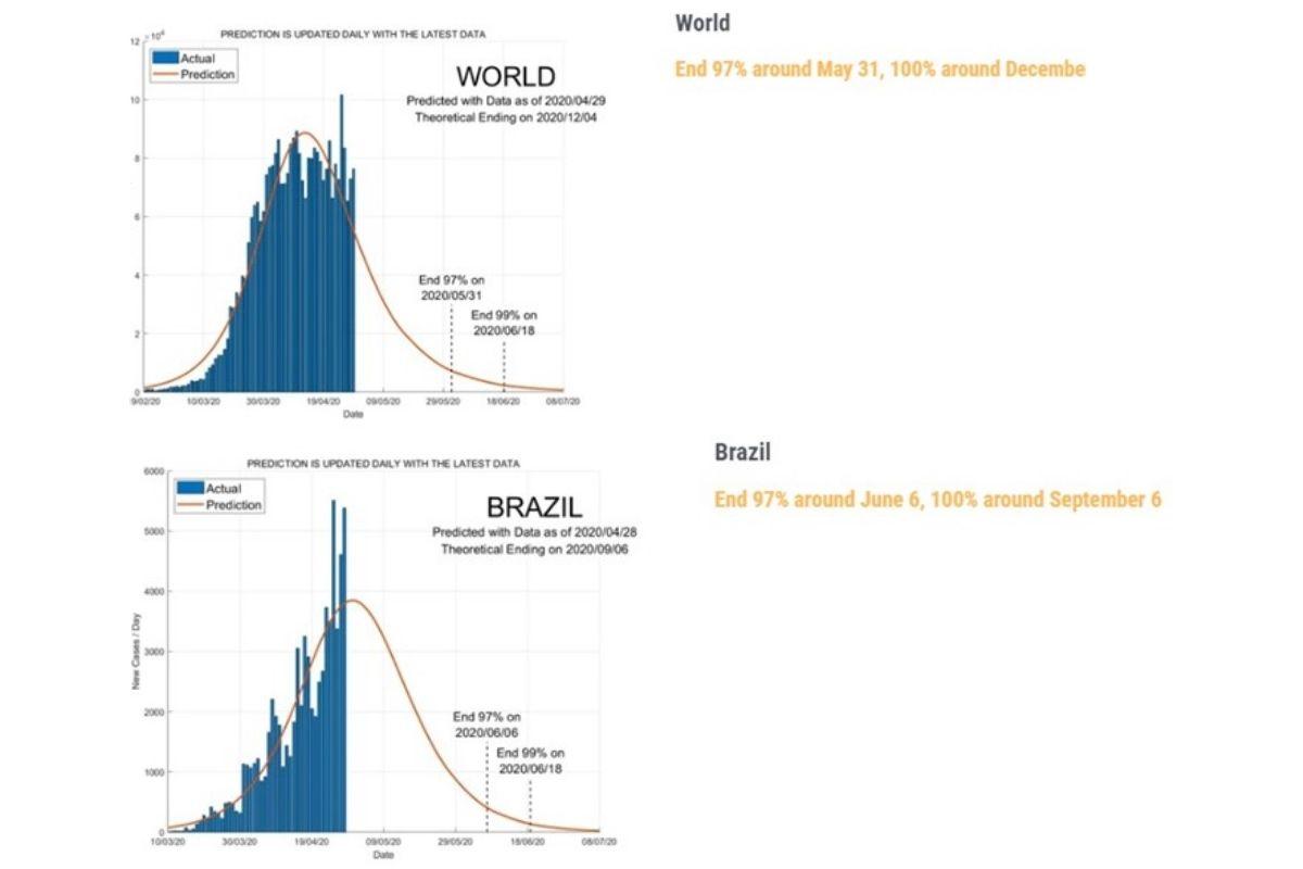 De acordo com a DDI, o vírus sofreria uma baixa de 97%, em termos mundiais a partir de 31 de maio, mas só seria zerado em 4 de dezembro deste ano. Já no Brasil, o pico seria atingido em 6 de junho e o contágio sofreria redução apenas em 6 de setembro.