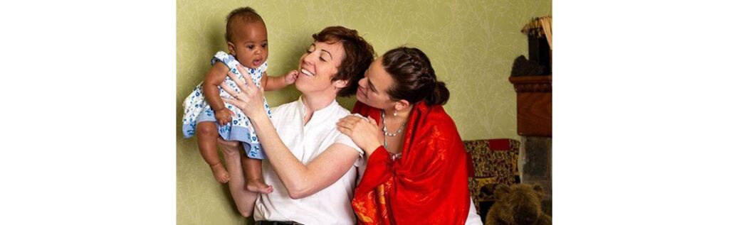 As famílias retratadas possuem filhos biológicos, adotados, animais de estimação – e são mostradas em cenas cotidianas que os aproximam, senão os igualam, aos casais hetero.