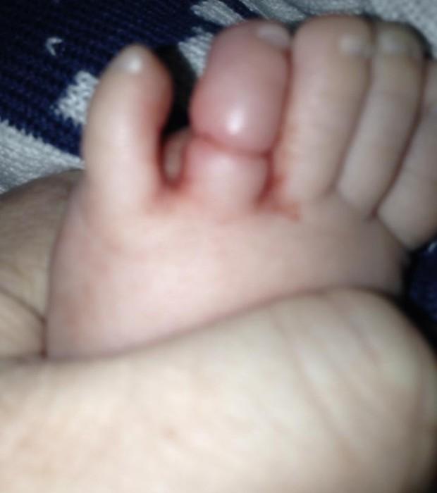 ela notou um fio de cabelo enrolado em um dedo do pé dele (Foto: Facebook Tizzie Hall Save Our Sleep)