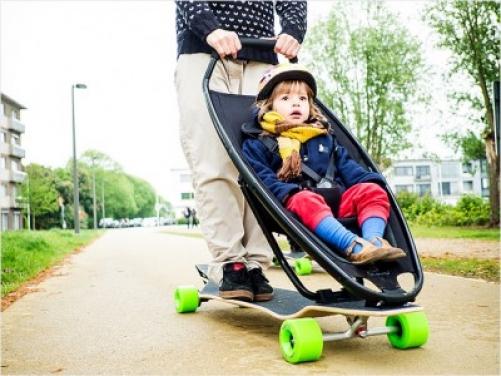 De acordo com o tablóide inglês The Daily Mail a ideia é de uma fabricante holandesa de carrinhos de bebê, a Quinny, que com a colaboração da agência de design Estúdio Peter Van Riet, criou um carrinho que os pais também pudessem usar para passear por aí.