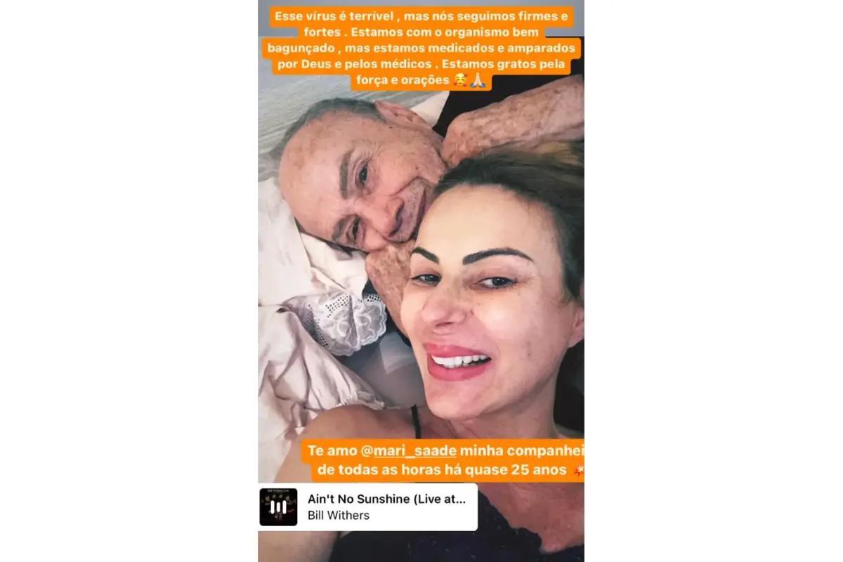 “Esse vírus é terrível, mas nós seguimos firmes e fortes. Estamos com o organismo bem bagunçado, mas estamos medicados e amparados por deus e pelos médicos. Estamos gratos pela força e orações. Te amo, Mari Saade, minha companheira de todas as horas há quase 25 anos”, escreveu o ator na legenda de seu post, o qual conta com uma foto onde o casal aparece deitado lado a lado.