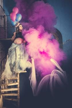Ela criou cenários, uma produção mais elaborada e desenhou vestidos. “O objetivo agora é colocar a grávida como parte do cenário e, para isso, uso muitos tules, véus, galhos secos, rosas no cabelo e fumaças coloridas”, explica.