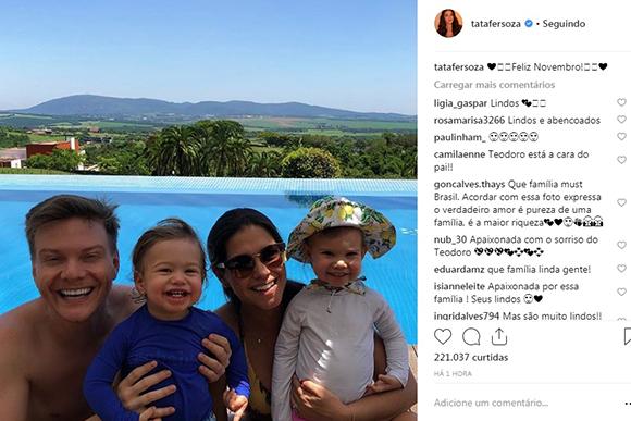 O casal está curtindo uns dias de folga com os filhos, logo após o fim da última temporada do The Voice, onde que o cantor é jurado. A publicação alcançou mais de 200 curtidas em apenas uma hora e inúmeros comentários. Dentre vários elogios à família, alguns seguidores compararam Teodoro com Teló. “Teodoro está a cara do pai!” e “o menino sorri igual ao pai”, escreveram duas fãs. Uma outra, aproveitou para apelidar carinhosamente: “Família sorriso!”, comentou. Recentemente Thais publicou uma montagem mostrando a semelhança entre os filhos.