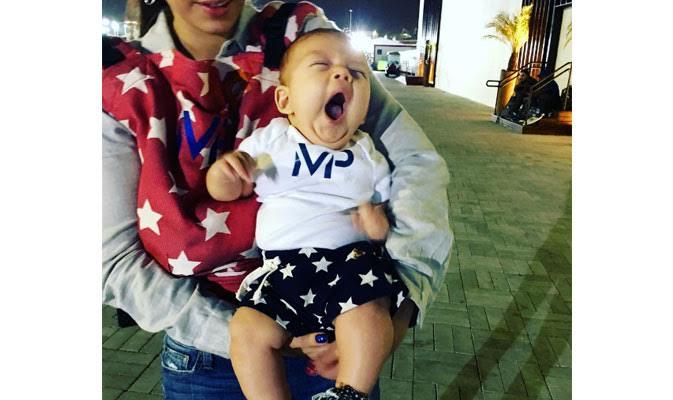 Hora de dormir: Boomer Phelps boceja no colo da mãe no complexo olímpico durante a Rio 2016 (Foto: Reprodução/Instagram)