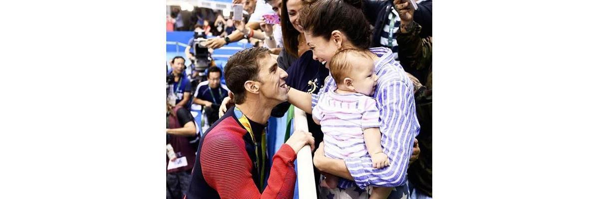 Essa cena tem se repetido durante a Olimpíada. Michael Phelps sai da piscina e vai correndo pegar o filho no colo. Boomer, de apenas 3 meses, conseguiu um feito inédito:…
