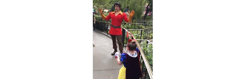 É verdade que alguns vilões precisam mesmo tomar umas belas broncas. Gaston não escapou de Lucy, 6 anos, que estava vestida de Branca de Neve e decidiu que era hora do vilão ouvir umas verdades quando os dois se encontraram em um dos parque da Disney. Ela começa dizendo que o personagem incomoda as pessoas e isso não é muito legal.