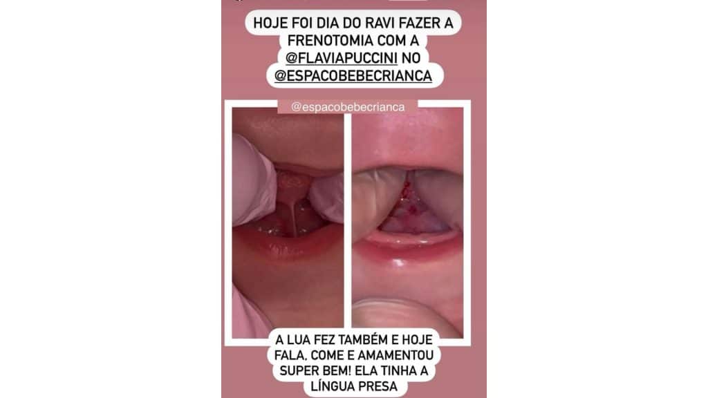 “Hoje foi dia do Ravi fazer a frenotomia. A Lua fez também e hoje fala, come e amamentou superbem! Ela tinha a língua presa”, contou a influenciadora aos seus seguidores. Viih relatou que o filho caçula está bem após a intervenção e se encontra em casa, se recuperando cercado de carinho e cuidados familiares.