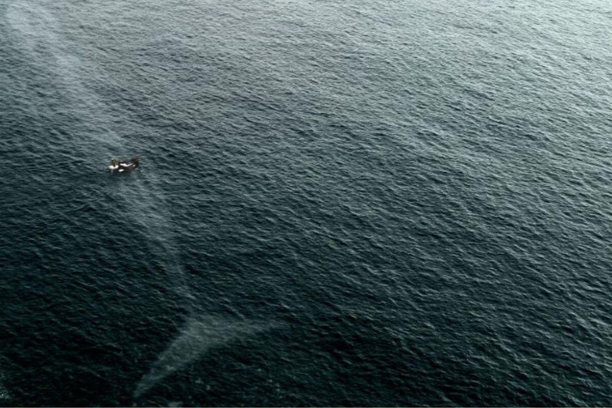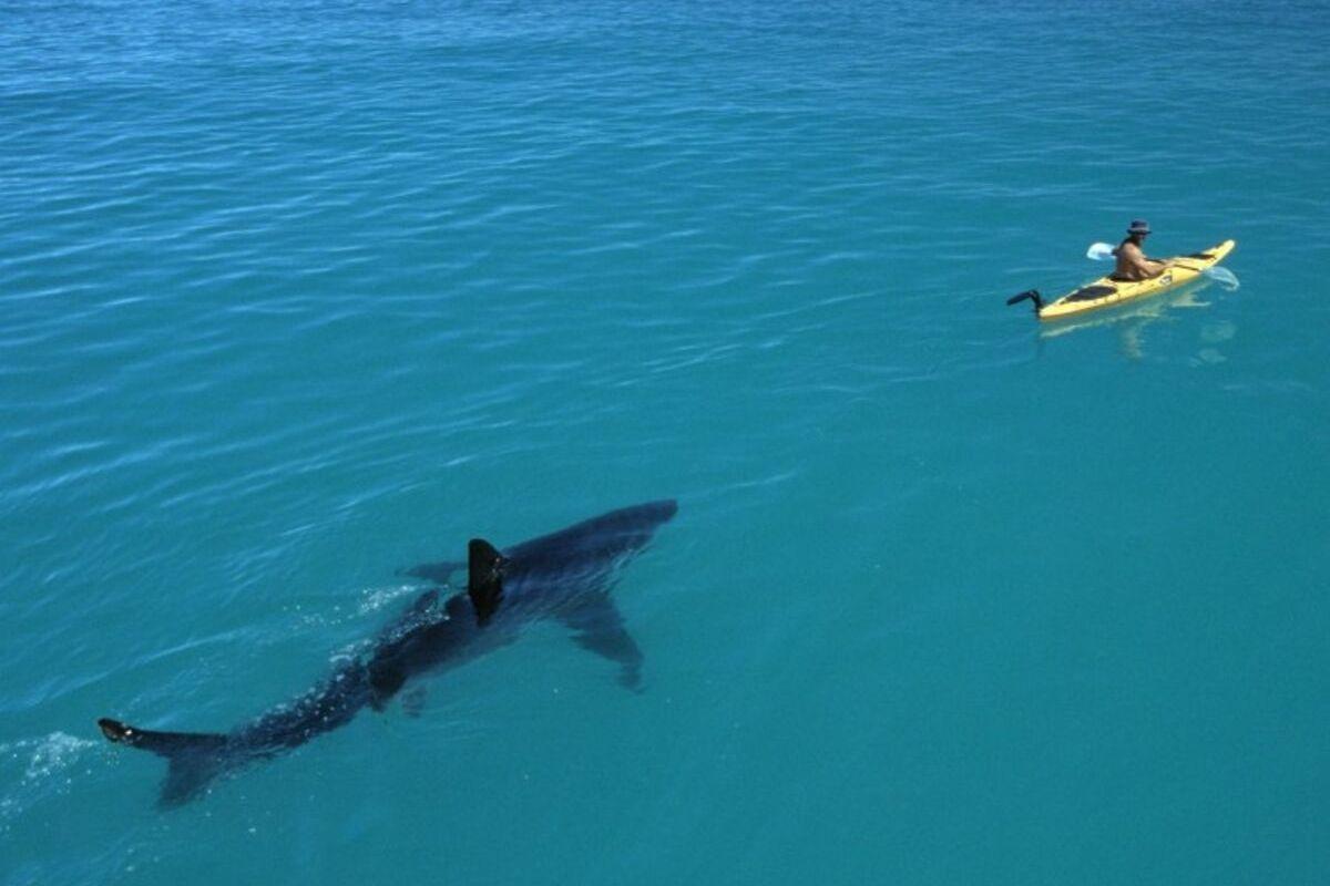 Imagine só estar passeando de caiaque, olhar para trás e perceber que você tem uma companhia bem inusitada.