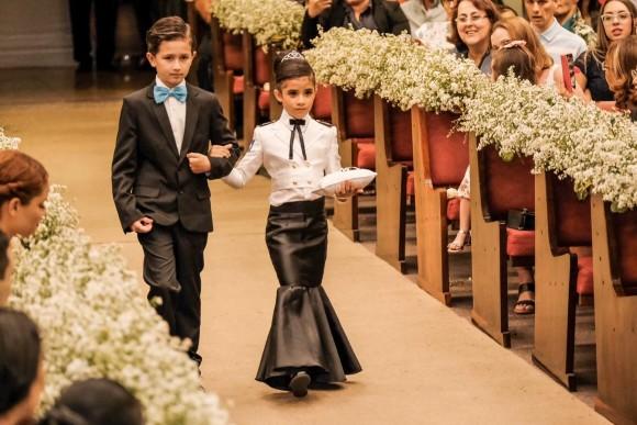 E não foi apenas a noiva que teve a roupa personalizada, a dama de honra também teve um vestido especial que também remetia a uma farda. O casamento na Igreja aconteceu em Cuiabá no último dia 13 deste mês e teve mais uma surpresa, pois não parou por aí.