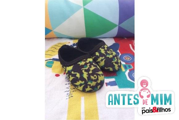 Imagina inovar no guarda-roupa gastando pouco? No site Antes de Mim, você pode anunciar e comprar produtos novos e seminovos online, como esse sapato de dinossauro, da loja O que tem no meu cabide.