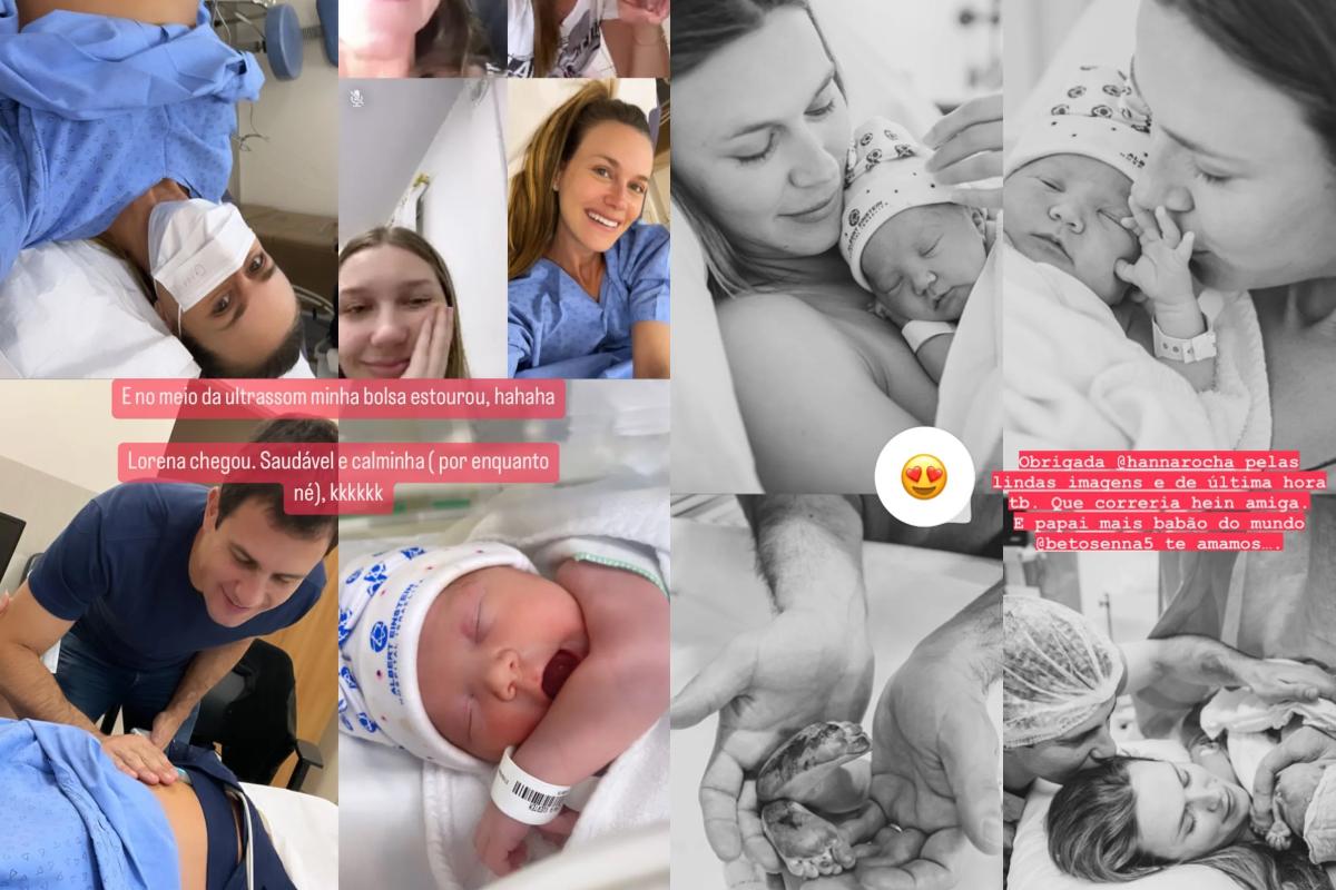 Na legenda do post em que anunciou o nascimento da filha, Renata adicionou: “E no meio do ultrassom minha bolsa estourou (risos). Lorena chegou. Saudável e calminha (por enquanto, né?) (risos)”, escreveu a apresentadora. “Obrigada, @hannarocha, pelas lindas imagens e de última hora também. Que correria, hein, amiga. E papai mais babão do mundo, @betosenna65, te amamos”, acrescentou a mãe de primeira viagem.