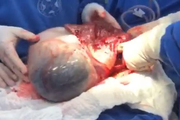Vídeo impressionante mostra bebê nascendo empelicado em parto normal