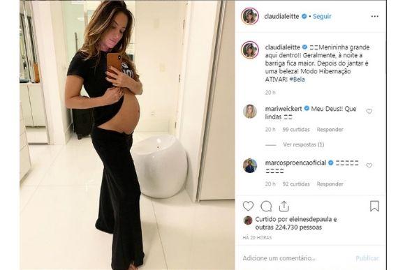 No último dia 05, quarta-feira, Claudia usou suas redes sociais para publicar uma foto de sua barriga. “Menininha grande aqui dentro!”, ela declarou. A cantora ainda aproveitou para comentar sobre próprio corpo e a barriga da terceira gestação: “Geralmente, à noite a barriga fica maior. Depois do jantar é uma beleza!”. Estamos ansiosos para conhecer a Bela!