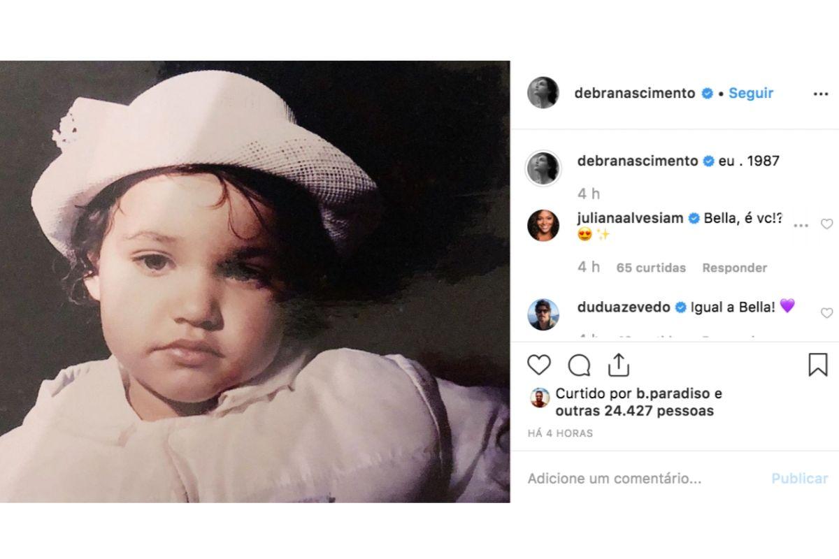Juliana Alvez, atriz e colega de Débora, foi a primeira a notar os traços parecidos. “Bella, é você?”, comentou. Foi unânime a opinião dos seus fãs: “A Bella é sua cara”, afirmaram.