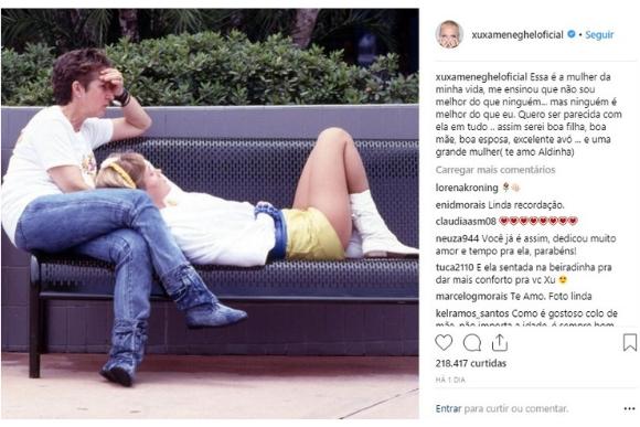 Na legenda da foto, Xuxa escreveu: “Essa é a mulher da minha vida, me ensinou que não sou melhor do que ninguém… mas ninguém é melhor do que eu. Quero ser parecida com ela em tudo .. assim serei boa filha, boa mãe, boa esposa, excelente avó … e uma grande mulher( te amo Aldinha)”.