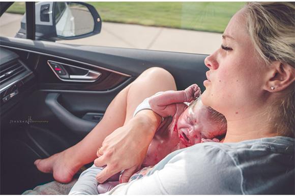 O momento foi registrado por Jennifer do J Banker Fotografia e Serviços de Parto que leva seu trabalho de doula e fotógrafa de nascimentos muito à sério. Depois de ajudar sua cliente a dar à luz no caminho para o hospital, ela já pegou sua câmera para capturar a cena.