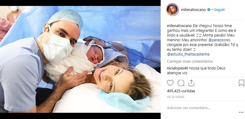 Quem anunciou para a internet o nascimento do filho foi o marido da atriz, o empresário Pedro Ozores. Em sequência, Milena publicou uma foto do momento do parto, que foi cesárea nas redes também. “Ele chegou! Nosso time ganhou mais um integrante!”, escreveu a mãe. João Pedro veio ao mundo às 9h45 da manhã, com 54 centímetros e 4.070 quilos. Parabéns, Milena!