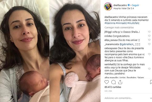 A campeã Olímpica da seleção brasileira de vôlei Sheilla Castro deu à luz Liz e Ninna na última segunda-feira (5), fruto de seu relacionamento com o técnico de basquete Brenno Blassioli.