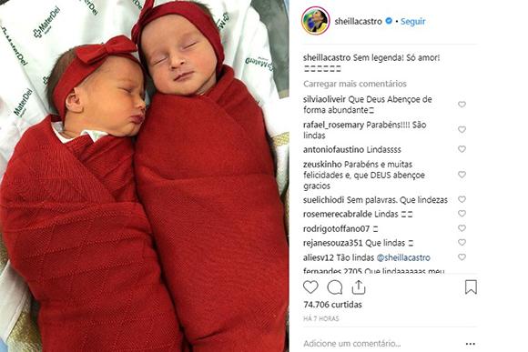 Na terça-feira (7), ela já havia publicado uma imagem com as bebês no colo informando a data de nascimento das crianças. “Amando e curtindo cada momento”, confessou na legenda.