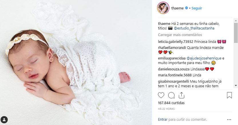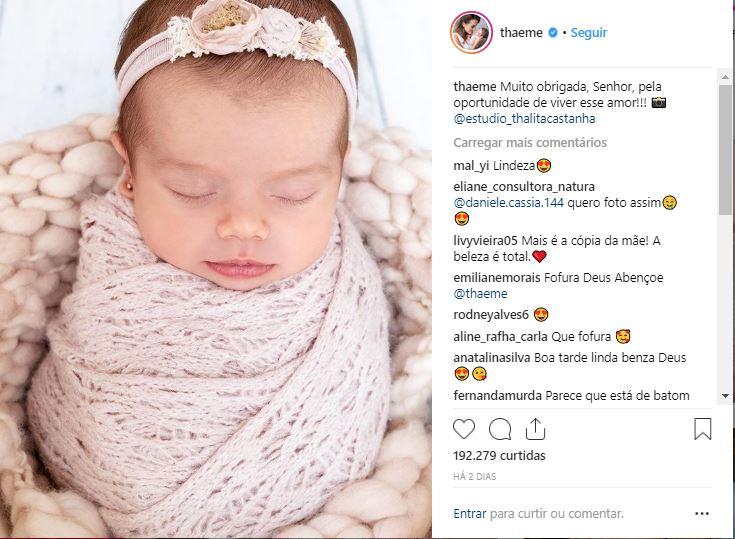 Thaeme explicou, na legenda da foto, que o ensaio foi feito quando a menina tinha 2 semanas de vida.