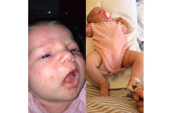 Os pais não perceberam o que estava acontecendo até uma noite, quando notaram que Brooke tinha uma ferida na boca e lábios inchados. Então, Claire lembrou-se de um artigo que sua amiga havia lhe mostrado sobre os perigos do herpes labial em bebês e levou sua filha para o hospital. Os médicos confirmaram que a recém-nascida tinha o vírus herpes simples 1, mas, felizmente, testes descartaram qualquer dano ao cérebro ou ao fígado. Após cinco dias internada, Brooke conseguiu voltar para casa.