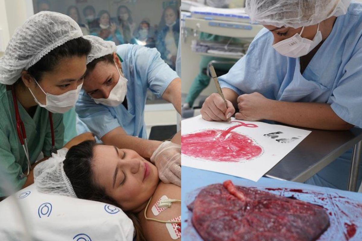 ”Meu obstetra que cuidou de mim e se emocionou comigo o tempo todo, sua família que também é sua equipe e o anestesista Marcos Padoveze.’’A pediatra da Lua que é tão humana e me ajuda em cada dúvida e cuida tão bem da minha filha, minha doula que ainda fez um lindo carimbo de placenta de recordação pra mim, que não é a placenta num quadro como achavam tá gente’’, continuou a mãe.