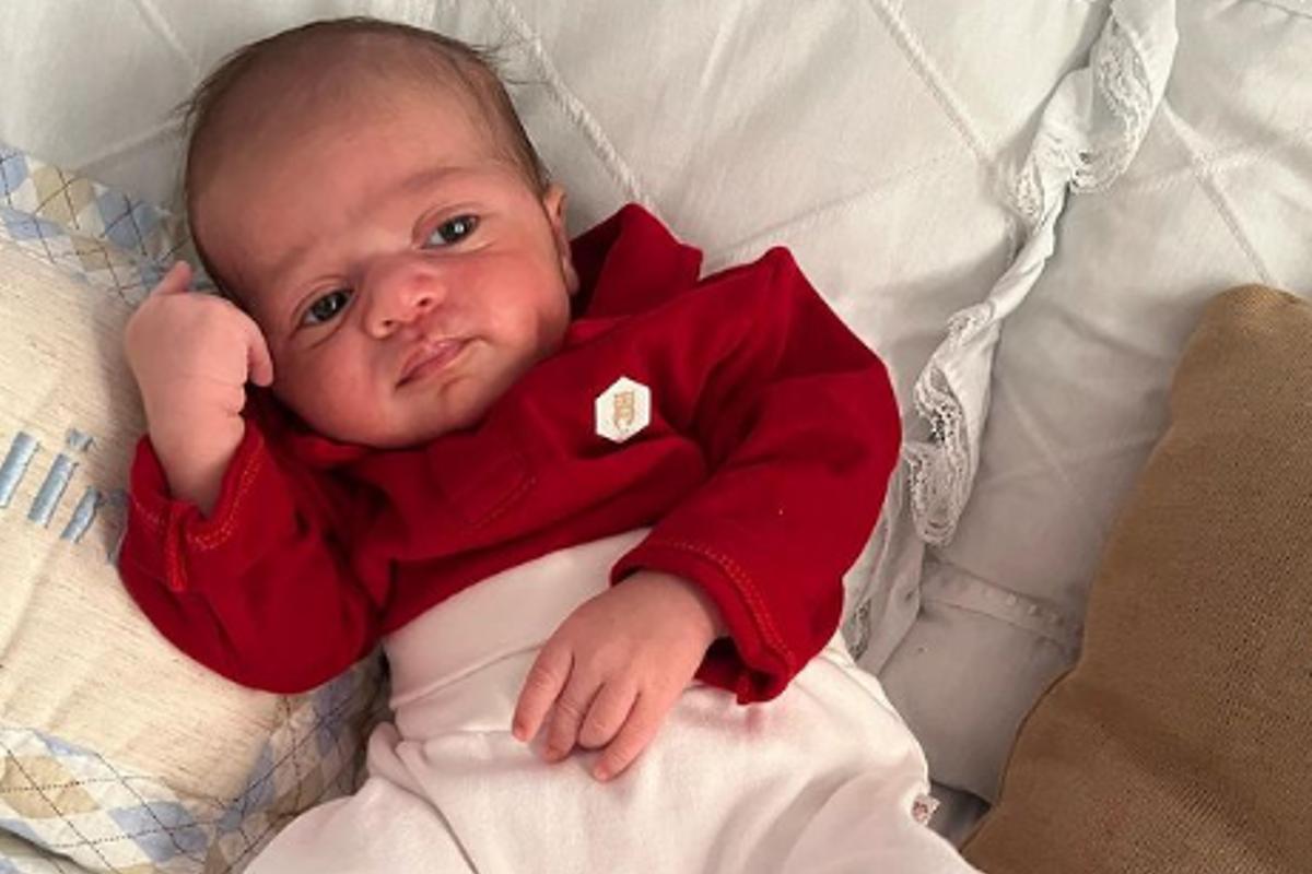 Na foto em questão, o bebê, o qual ainda não completou seu primeiro mês de vida, surge deitado enquanto veste uma blusa vermelha, uma calça clara e um tênis de lã. Com uma pose ‘pensativa’, as mãos do mais novo surgem próximas a cabeça dele e, assim, emocionou a mãe e os fãs da família.