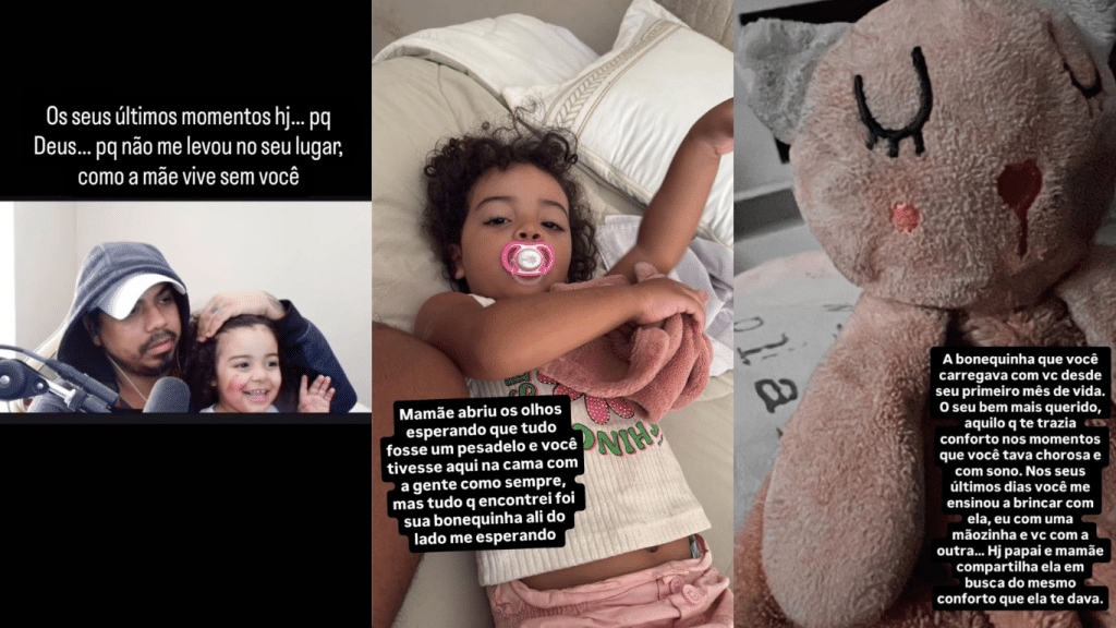 A influenciadora também compartilhou fotos da boneca preferida da filha, um urso de pelúcia que a acompanhava desde o nascimento. “Mamãe abriu os olhos esperando que tudo fosse um pesadelo e você tivesse aqui na cama conosco como sempre, mas tudo o que encontrei foi sua bonequinha ali do lado me esperando”, desabafou.