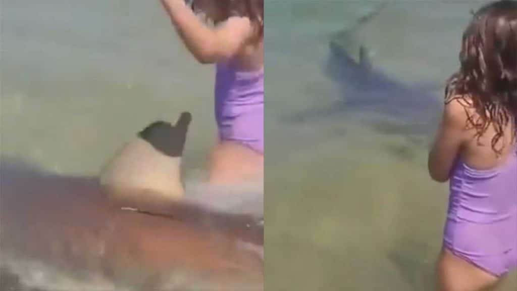 As cenas mostram o tubarão se aproximando de duas crianças — uma delas, inclusive, aparece em um momento tenso sendo circulada pelo animal. Felizmente, ele se afastou. Mas a tensão estava só começando.
