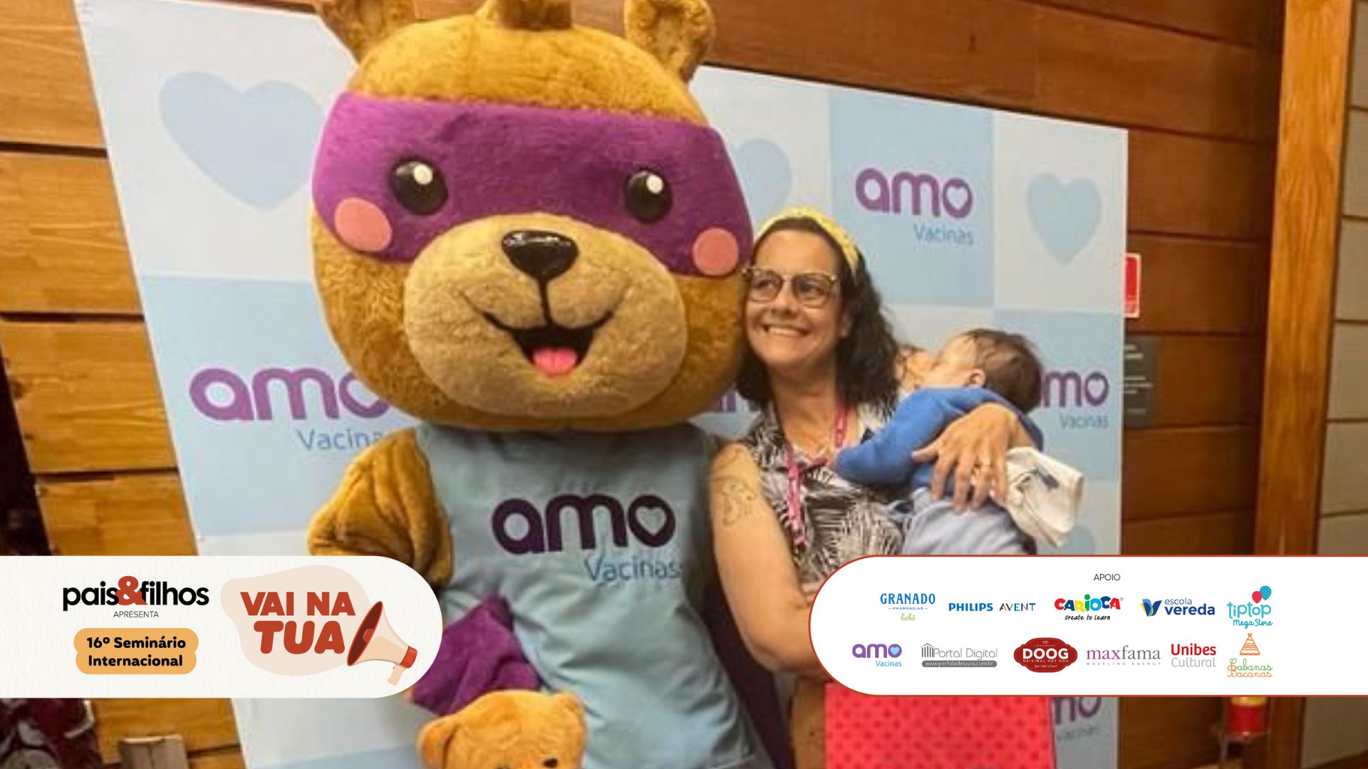 A ativação da Amo Vacinas foi mais um ponto de conhecimento no nosso Seminário! Lá, uma enfermeira tirou todas as dúvidas do público sobre vacinas. Além disso, mais dois mascotes alegraram as crianças.