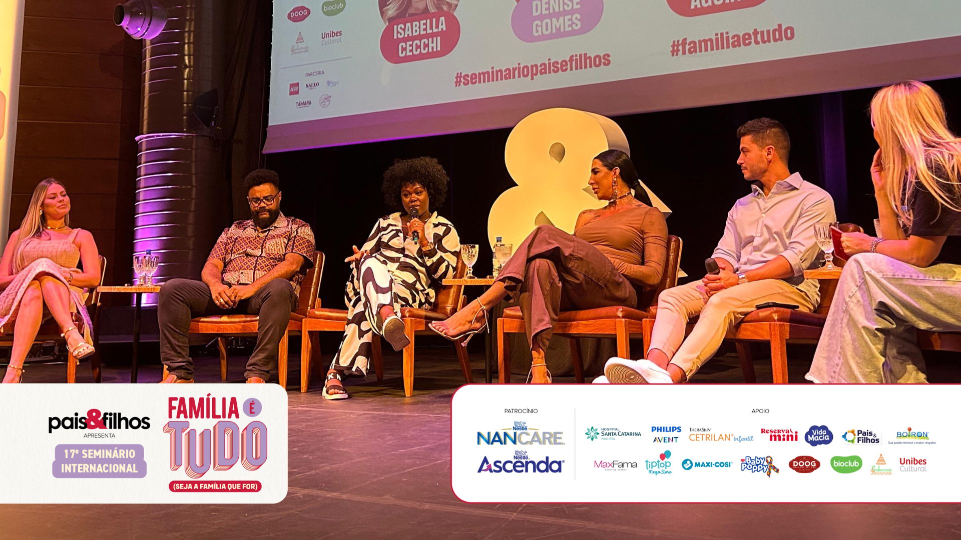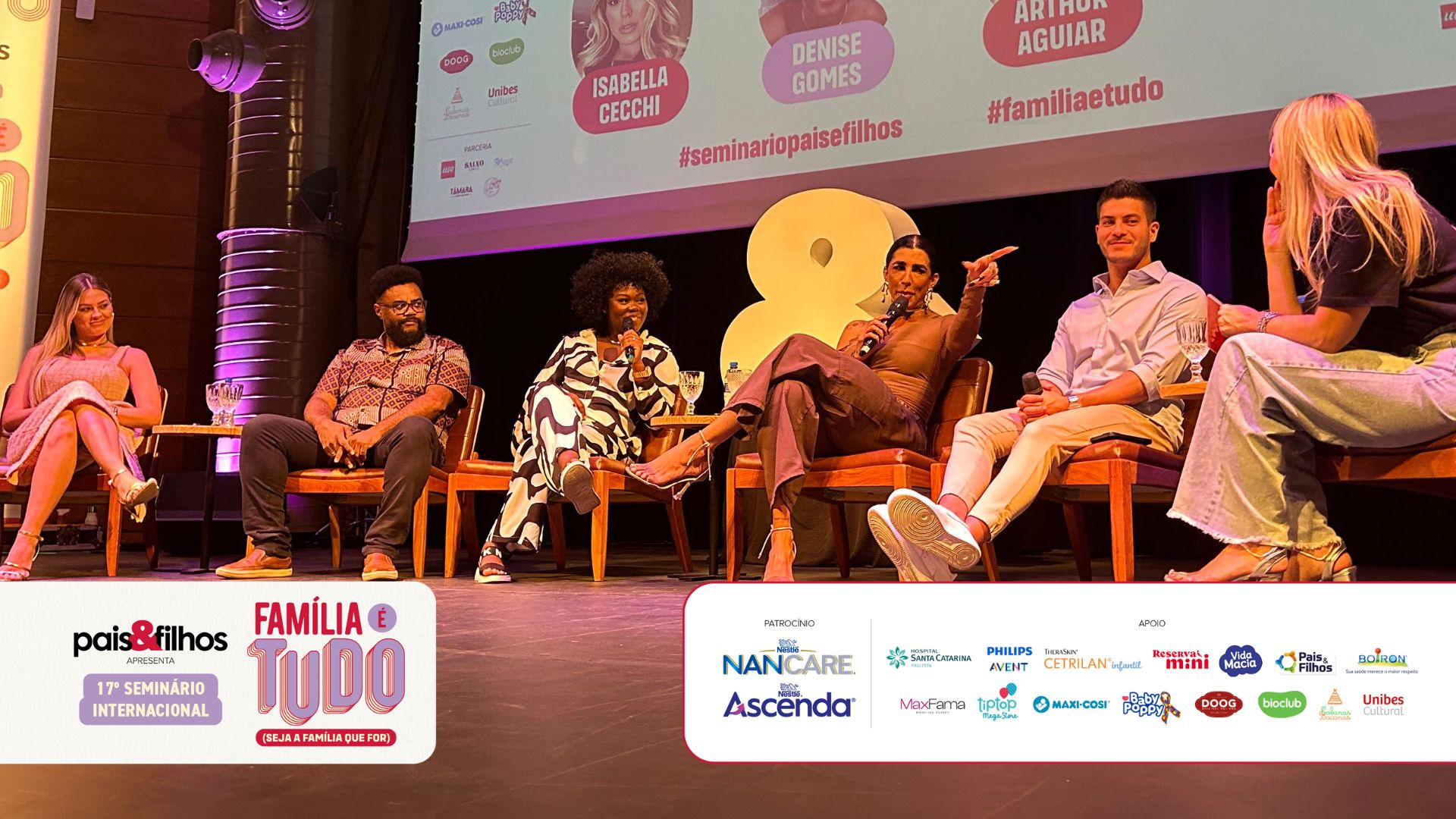 O 17° Seminário Pais&Filhos, infelizmente, está quase acabando,  e para terminar o dia com chave de ouro, fizemos, é claro, a famosa mesa-redonda! Para falar sobre o tema Família é Tudo (Seja a Família que For), recebemos Arthur Aguiar, Pepita, Denise Gomes, Francisco Borges e Isabella Cecchi. A conversa toda foi realizada pela apresentadora do seminário e CMO da Pais&Filhos, Andressa Simonini, filha de Branca Helena e Igor.