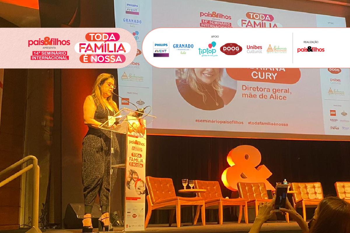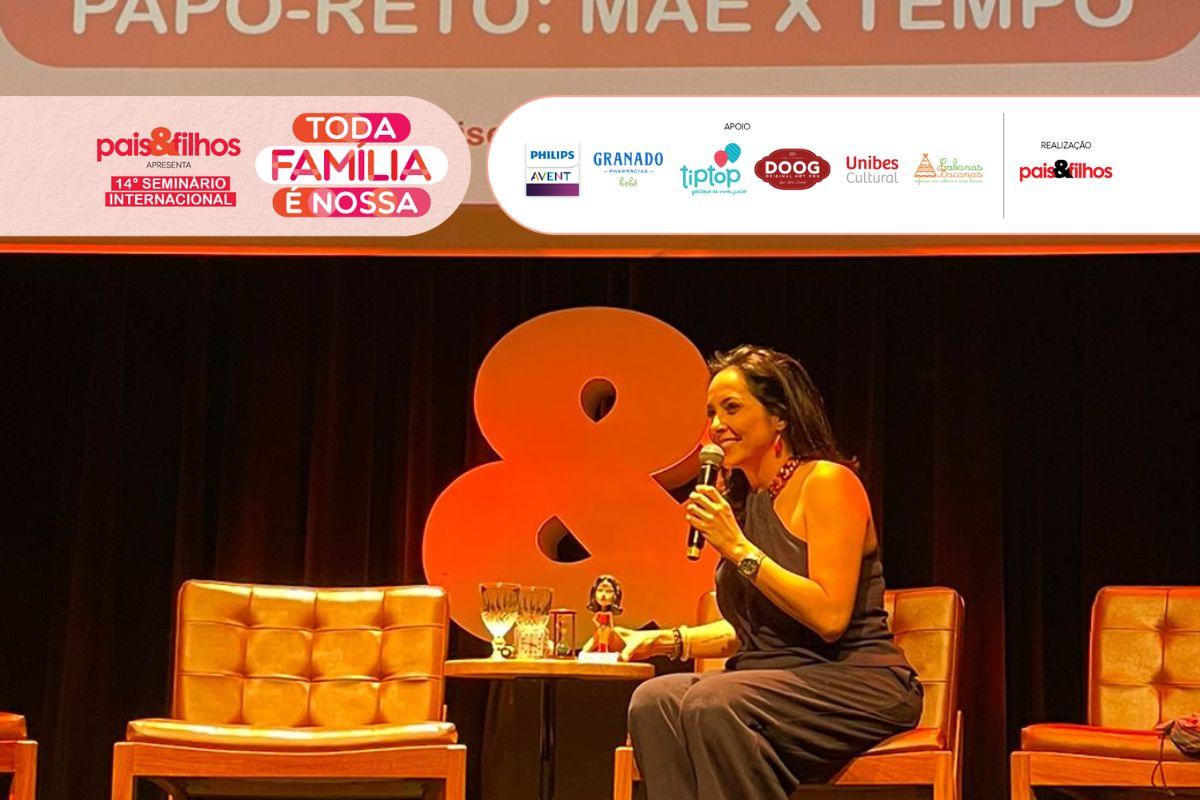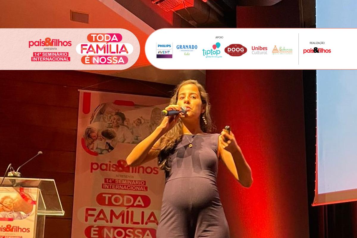 A educadora Infantil e empreendedora, Valesca Karsten, mãe de Thiago e Roberta, subiu ao palco do Seminário para trazer insights sobre o projeto PAISdemia, que busca avaliar o impacto da pandemia na vida das famílias. “É um compromisso muito grande escrever o que as pessoas sentem. É uma honra participar desse projeto que carrega tanta responsabilidade”, começou. Valesca ainda comentou: “Está todo mundo muito doente, principalmente as crianças. Isso as afeta e elas acabam entendendo que são um peso para os pais”, por isso ressaltou: “Hoje, é importante que elas [as crianças] voltem às atividades, aos assuntos, às conversas”. Em bate-papo com a plateia, algumas mães falaram um pouco sobre a balança entre família e pandemia. Uma delas relatou sobre a descoberta de ter um ‘adolescente’ em casa. Em outros pontos, mães também explicaram que conheceram outros lados de si mesmas e dos filhos pela súbita aproximação e destacou: “A infância não é um tempo ou uma idade: é quando estamos disponíveis para surpreender o mundo, ela é para sempre!”.