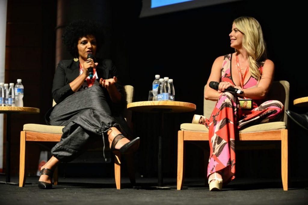 Magda Figueiredo e Karina Bacchi na mesa redonda (Foto: Rogério Lorenzoni)