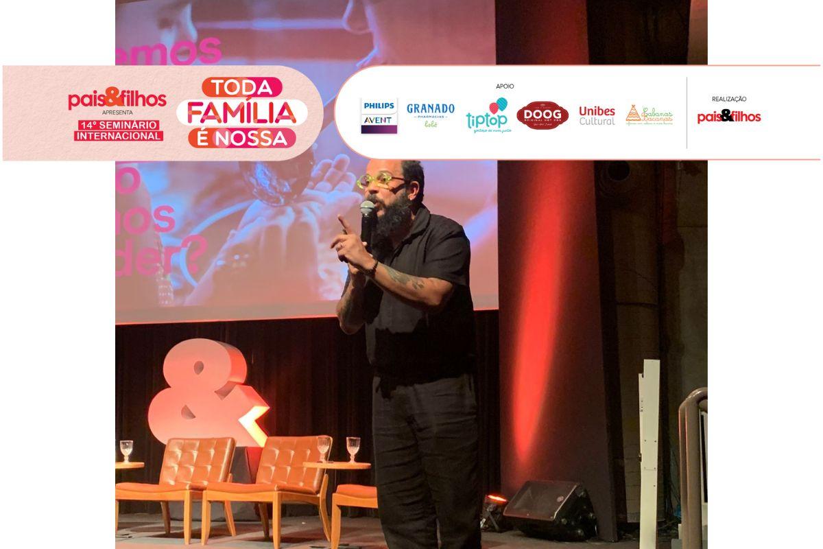 Um deles é Peu Fonseca! Peu, pai de João, Irene, Teresa e Joaquim comandou a palestra “Toma que o filho é nosso”, falando sobre como é necessária a atuação de toda uma comunidade para criar uma criança, sendo responsabilidade não apenas dos pais. Também vale lembrar que uma provocação feita por ele a partir de um provérbio africano inspirou o tema desta edição: “Toda família é nossa”.