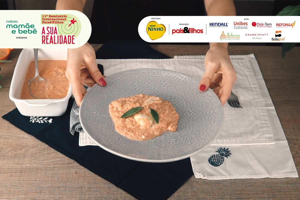 Nada como a hora do almoço para renovar os ânimos! Para te ajudar a deixar esse momento ainda mais delicioso, separamos duas receitas deliciosas e super práticas. O passo a passo completo está rolando durante o 11° Seminário Internacional Pais&Filhos – A Sua Realidade, apresentado pela Natura Mamãe e Bebê, e, para que você não perca nenhum detalhe, confira o passo-a-passo abaixo: