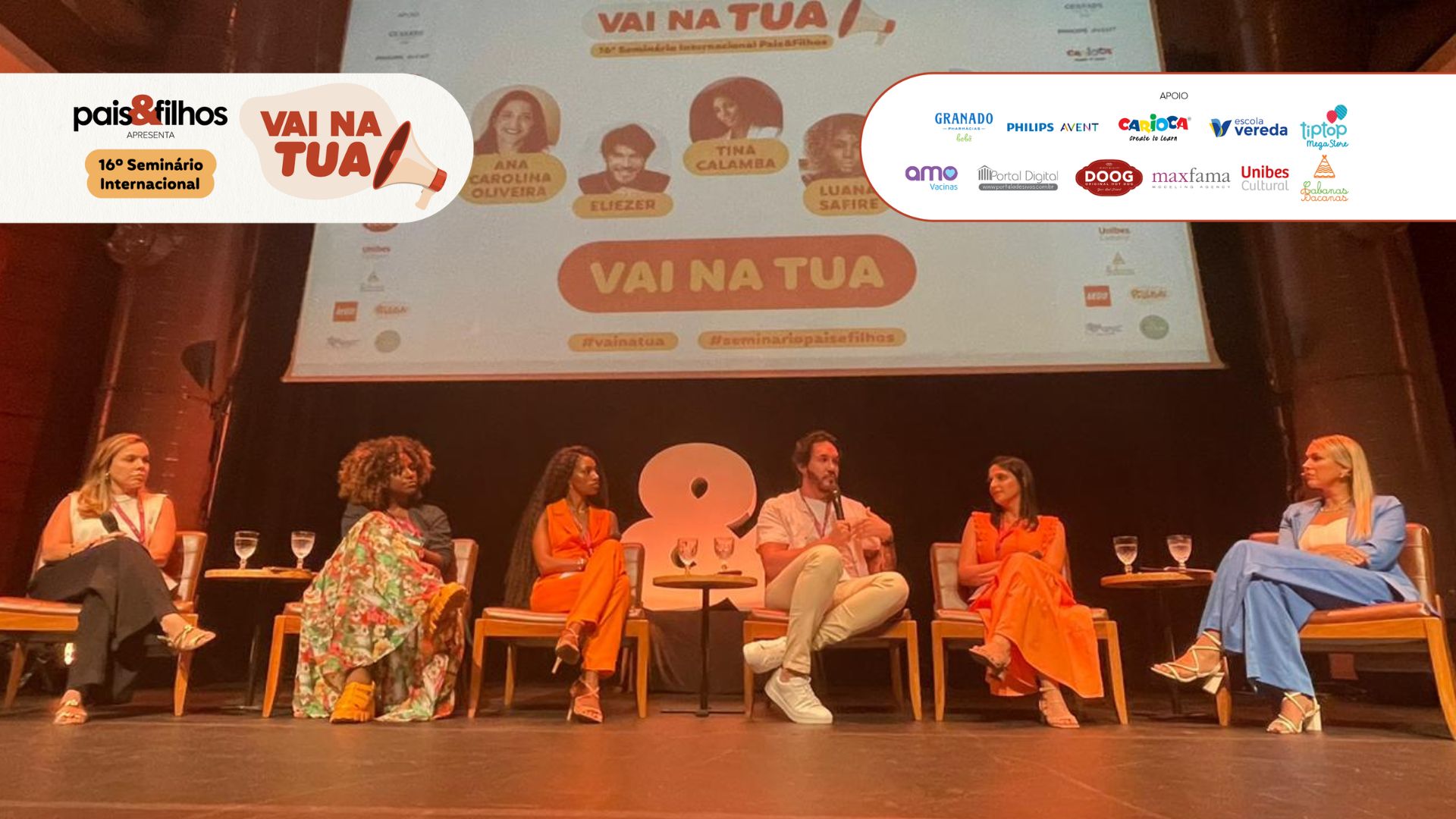 O 16º Seminário Internacional Pais&Filhos está quase chegando ao fim! E para terminar o dia com chave de ouro, rolou uma mesa-redonda pra lá de especial. Para falar sobre o tema “Vai na Tua”, recebemos Ana Carolina Oliveira, Eliezer, Luana Safire, Tina Calamba e Priscilla Montes. A conversa toda foi mediada pela apresentadora do seminário e editora-executiva da Pais&Filhos, Andressa Simonini, filha de Branca Helena e Igor.